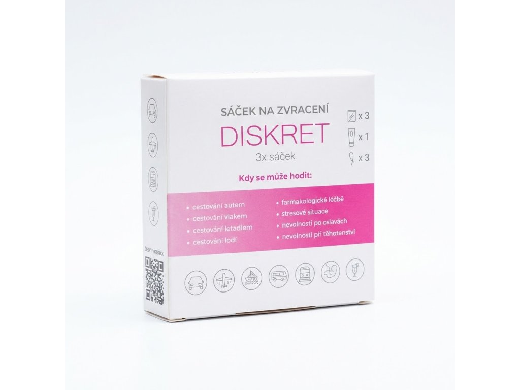 Praktické a hygienické řešení pro cesty a nepříjemné nevolnosti. Balení obsahuje 3 sáčky na zvracení a 50 ml dezinfekčního roztoku pro okamžité ošetření rukou či povrchu po použití.